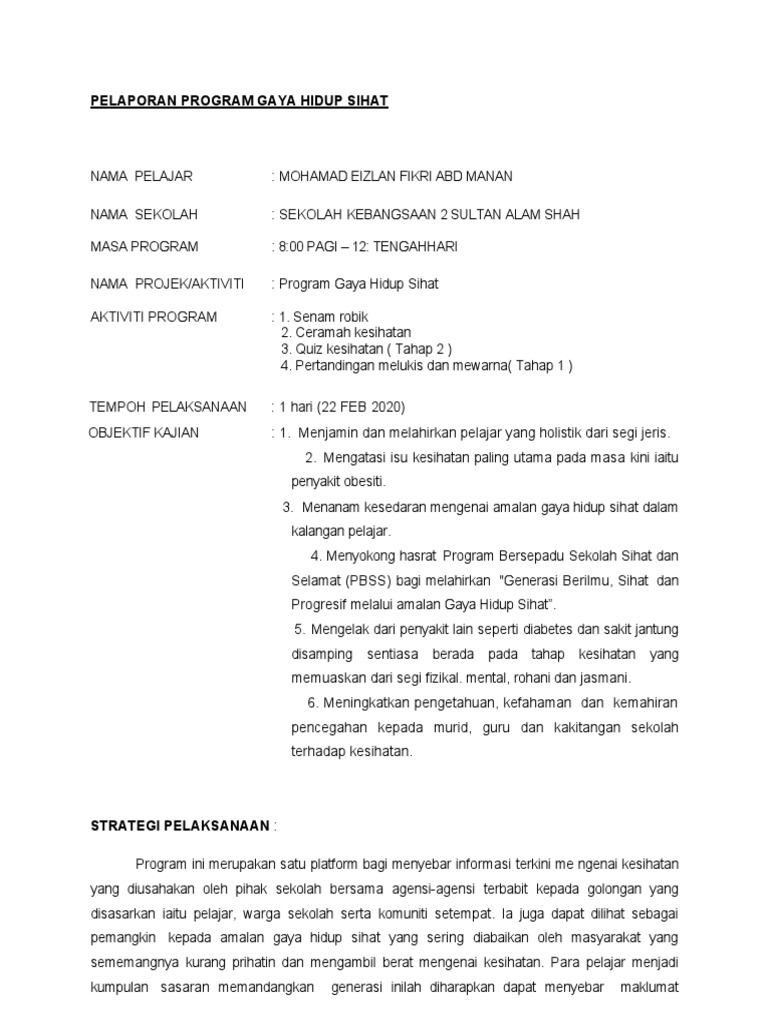Amalan Gaya Hidup Sihat Merupakan Aktiviti Yang Selalu Dibuat Untuk Mengekalkan Kesihatan Tubuh Badan Pdf