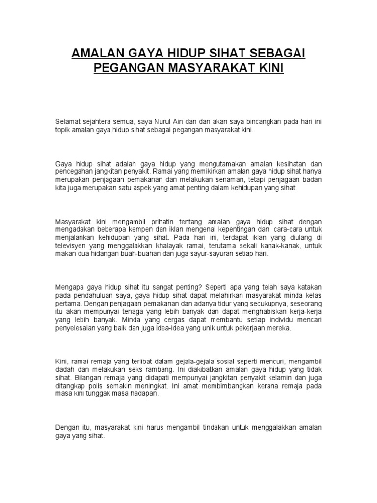Karangan Gaya Hidup Sihat Satu Amalan Yang Murni Pdf